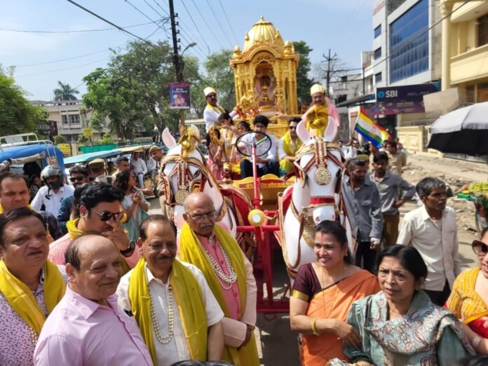 रथ यात्रा में मुख्य सबसे आगे जैन ध्वज, बैनर, अष्टप्रतिहरे, स्वर्ण रथ व प्रमुख बैन्ड यात्रा की शोभा बढ़ा रहा था। इसी के साथ महावीर दिगंबर जैन मंदिर कचहरी रोड पर रथ यात्रा की स्वागत एवं आरती हुई आज के मुख्य अतिथि श्री अमित अग्रवाल जी ने संपूर्ण यात्रा में पदयात्रा कर यात्रा का धर्म लाभ लिया