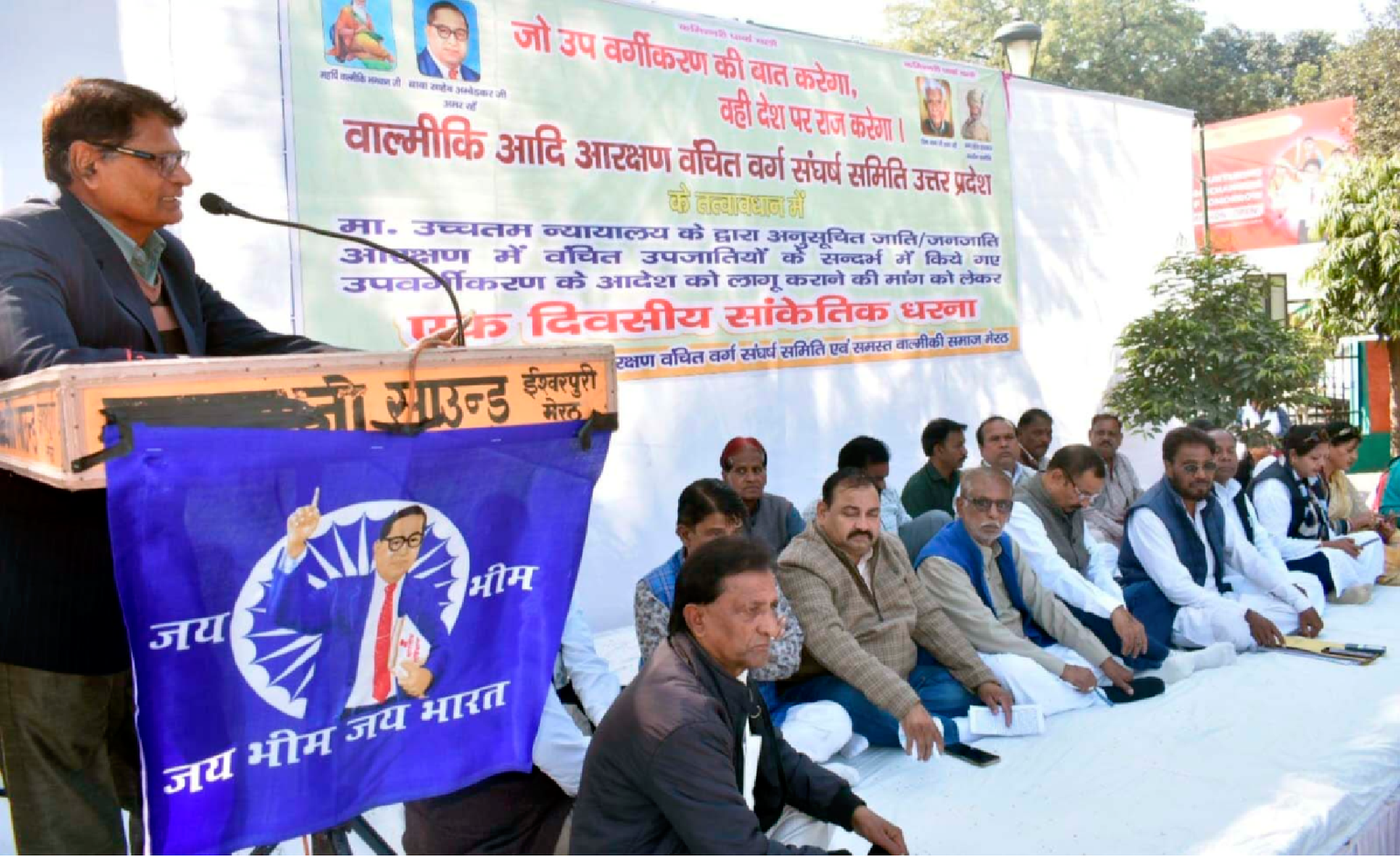 वाल्मीकि आदि आरक्षण वंचित वर्ग संघर्ष समिति उत्तर प्रदेश के संयोजक विनोद कुमार बेचैन के द्वारा कमिश्नरी पार्क मेरठ में एक दिवसीय सांकेतिक धरना देने के अवसर पर कही। विनोद कुमार बेचैन ने उपस्थित आंदोलनकारियों को संबोधित करते हुए कहा कि जब उच्चतम न्यायालय के आदेश का पालन करते हुए देश के अन्य राज्यों ने आरक्षण में उपवर्गीकरण का लाभ उप जातियों को दे दिया है। लेकिन सवाल यह उठता है कि उत्तर प्रदेश सरकार इस मामले में सकारात्मक कदम क्यों नहीं उठा रही।
