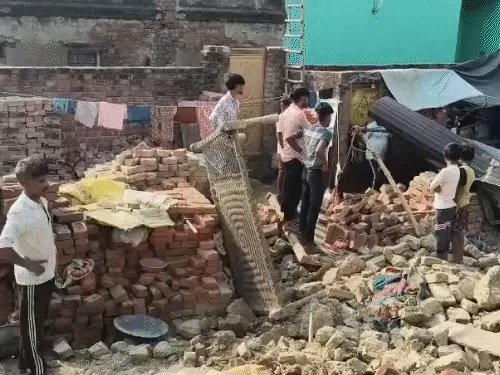 बृजेश ने बताया कि उन्हें मिलाकर उनके परिवार के छह लोग दब गए थे। उनकी पत्नी रूबी (40) बेटा दिलीप (8) और बेटी बेबी (13) की मौत हो गई। वे और दो बेटियां पल्लवी और गुड़िया को गंभीर घायल हो गए। बृजेश का पैर टूट गया है, जबकि दोनों बेटियों को सिर और सीने पर चोटें आई हैं।