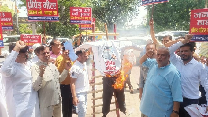 – प्रीपेड मीटर लगाए जाने के विरोध में उद्योग व्यापार प्रतिनिधिमण्डल का प्रदर्शन।