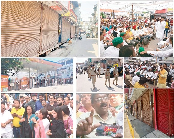 उन्होंने कहा कि यह धरना और आंदोलन किसी राजनीतिक पार्टी का नहीं है बल्कि व्यापारियों के भविष्य को बचाने का है। कांग्रेस महानगर अध्यक्ष रंजन शर्मा ने कहा कि आज दुख का विषय है। कुछ नहीं कर सकते तो यहां धरने पर आ सकते हैं। करोड़ों का नुकसान हो रहा है। एकजुट रहो, हमारा पूरा सहयोग रहेगा। दवा संगठन के वरिष्ठ पदाधिकारी गोपाल अग्रवाल ने कहा कि यह बंद चेतना और दुख का बंद है। 25 साल से व्यापारी की कमर्शियल रजिस्ट्री है, जीएसटी नंबर है, बिजली का बिल कमर्शियल है। हमने कोई कब्जा नहीं किया है। जमीन भी हमारी है। हमारी जमीन का सिर्फ भू उपयोग परिवर्तित है। पूर्व के वर्षों में पांच मिनट में मामले सुलट गए। आज इच्छा शक्ति की कमी है।