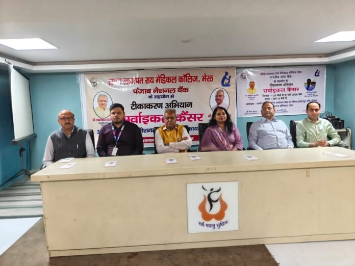 शारदा रिपोर्टर मेरठ। महिलाओं के स्वास्थ्य और सुरक्षा की दिशा में एक ऐतिहासिक कदम उठाते हुए क्रांति धरा मेरठ में गर्भाशय (सर्वाइकल) कैंसर से बचाव के लिए एक व्यापक टीकाकरण अभियान का भव्य शुभारंभ किया गया। इस दौरान गर्भाशय कैंसर से बचाव के लिए टीकाकरण कराया गया। ताकि, छात्राओं में होने वाली बीमारियों से बचाव किया जा सके।