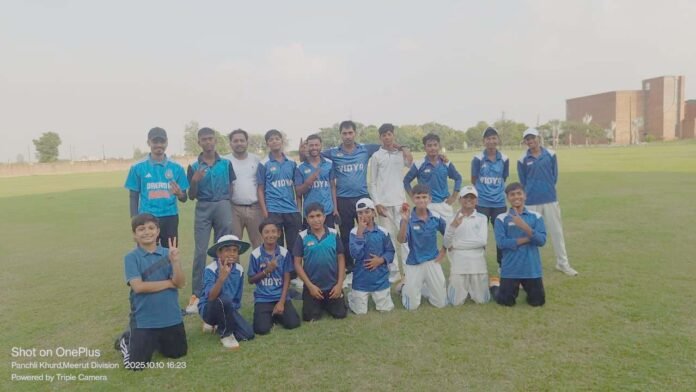 मेरठ। विद्या नॉलेज पार्क के क्रिकेट मैदान पर गुरुवार को एसएससी और वीसीए के बीच एक मैत्री किके्रट मैच खेला गया। जिसमें वीसीए की टीम ने 70 रनों से मैच जीता। वीसीए की टीम टॉस जीतकर पहले बल्लेबाजी करते हुए 20 ओवरों में तीन विकेट के खोकर 215 रन बनाएं जिसमें देव ने 112, अक्ष बेसला ने 65 सर्वाधिक रनों का योगदान दिया। वहीं वीसीए की ओर से समर ने दो सर्वाधिक विकेट लिए।