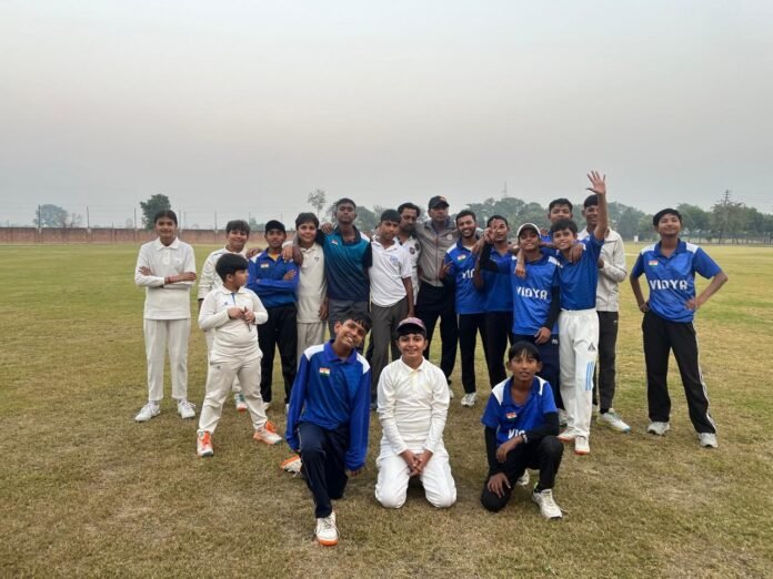 मेरठ। विद्या नॉलेज पार्क के क्रिकेट मैदान पर शुक्रवार को विद्या क्रिकेट एकेडमी और सुपर स्टार चैंपियन के बीच किके्रट मैच खेला गया। जिसमें विद्या क्रिकेट एकेडमी ने नौ विकेट से मैच जीत। सुपर स्टार चैंपियन की टीम टॉस जीतकर पहले बल्लेबाजी करते हुए 20 ओवरों में तीन विकेट के खोकर 115 रन बनाएं जिसमें आयुष सत्यावाल ने 59, अक्ष ने 12 और मनु ने 11 रनों का योगदान दिया। वहीं विद्या क्रिकेट एकेडमी की ओर से कार्तिक, सुधीर, दिवित ने एक-एक विकेट लिए।