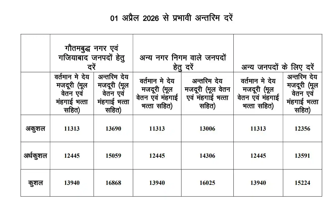 यूपी में सीएम योगी आदित्यनाथ की सरकार ने बड़ा ऐलान किया है। यूपी की योगी आदित्यनाथ सरकार ने गौतमबुद्ध नगर में विरोध प्रदर्शन के बीच कुशल और अकुशल श्रमिकों का वेतन बढ़ाने का फैसला किया है। यूपी सरकार ने श्रमिकों की मजदूरी में एक अप्रैल से 21 फीसदी तक की अंतरिम बढ़ोतरी का फैसला किया है। अब अंतरिम तौर पर मजदूरी दरें नोएडा और गाजियाबाद में अकुशल श्रमिकों के लिए 13690 रुपये अर्ध कुशल मजदूरों के लिए 15059 रुपये और कुशल श्रमिकों के लिए 16868 रुपये तय की गई हैं।